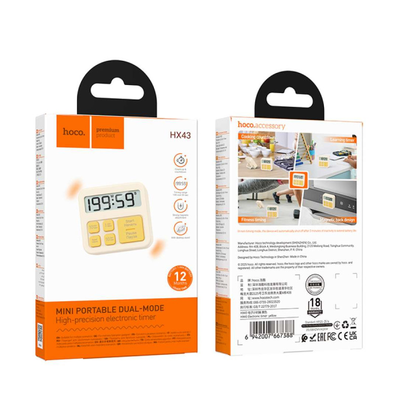 Cronometru electronic cu ceas digital Hoco HX43 Electronic timer [Yellow]