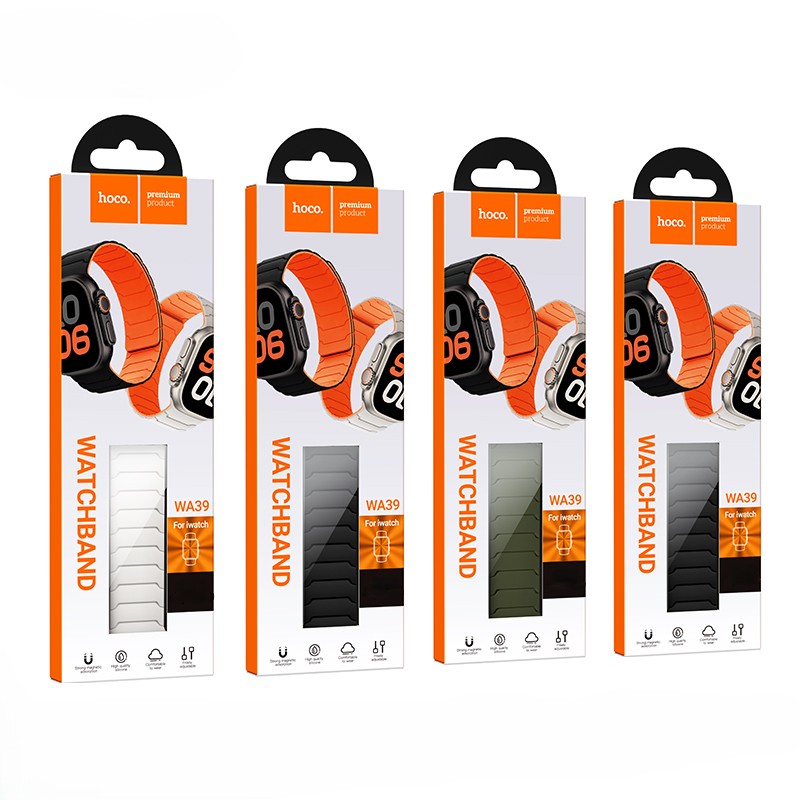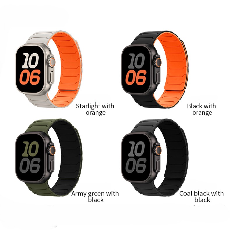 Curea smartwatch Hoco iWatch WA39 Flexible series magnetic silicone strap(44/45/46/49mm) [army green with black]