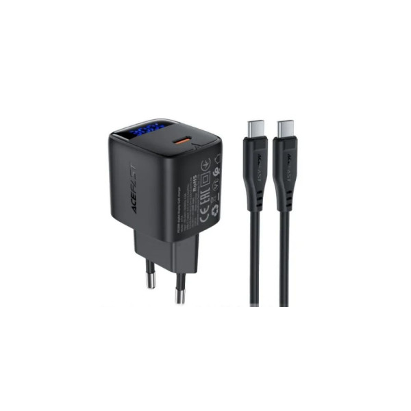 Incarcator de retea Acefast A115 PD30W GaN charger USB-C with digital display set (P5) [Black]