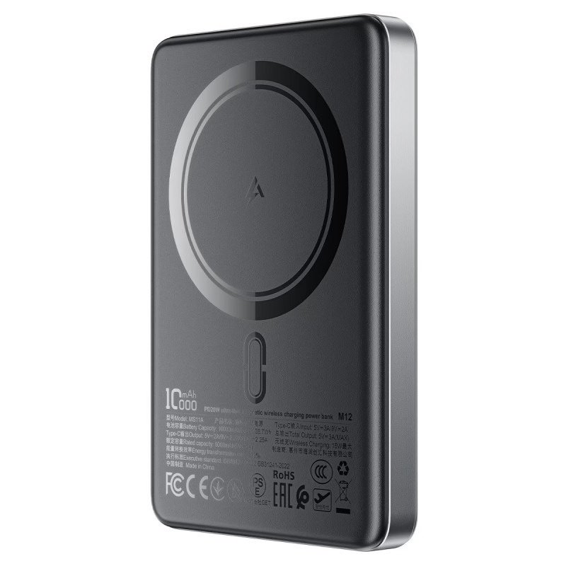 Power Bank Acefast M12 PD20W ultra-thin magnetic wireless charging power bank 10000mAh [Black]