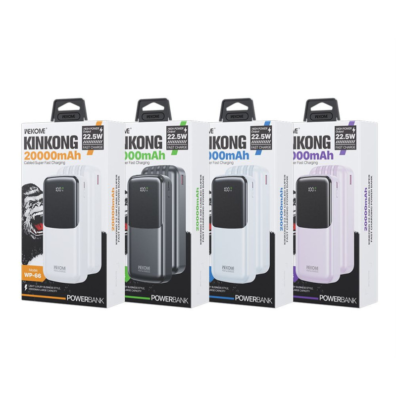 Power Bank Wekome WP-66 22.5W Cabled Super Fast Charging Power Bank 20000mAh [Black]