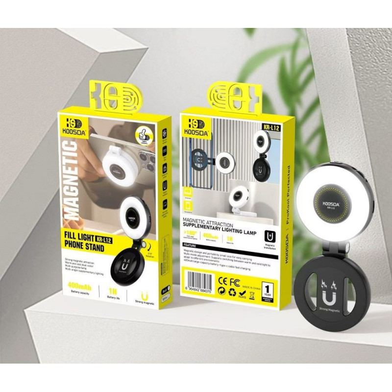 Подсветка для селфи Koosda KR-L12 Magnetic Fill Light With Phone Stand 400mAh [Black]