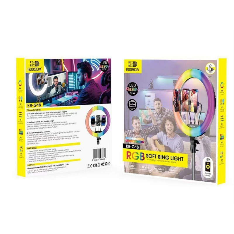 Кольцевая лампа Koosda KR-G18 18inch RGB Soft Ring Light With Bluetooth Remote Control [Black]