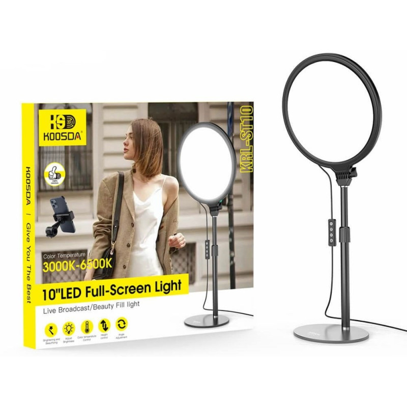 Кольцевая лампа Koosda KRL-ST10 10"LED Full-Screen Light Live Broadcast/Beauty Fill light [Black]